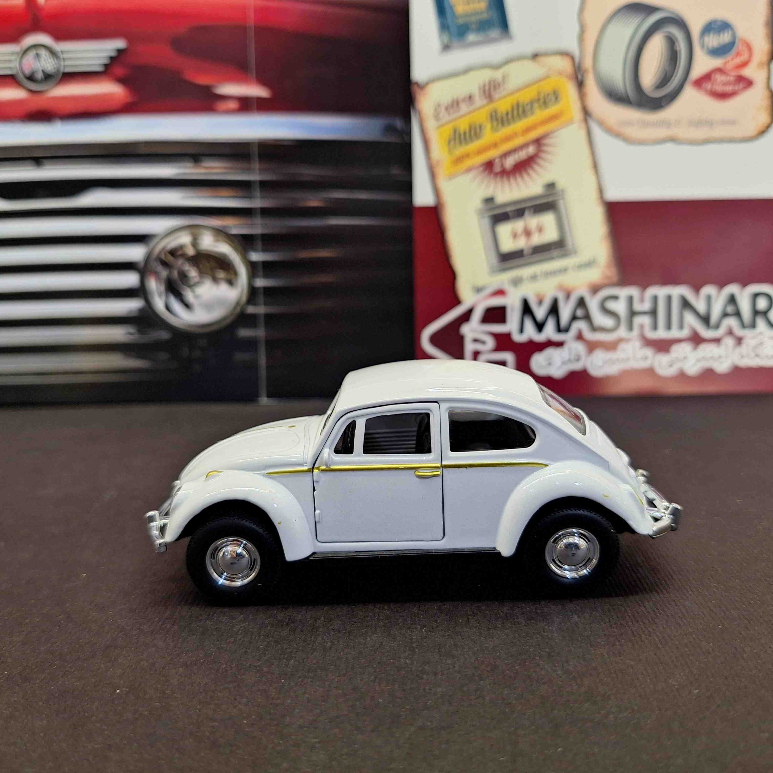 ماشین فلزی فولکس واگن قورباغه ای محصول سال 1967 شرکت خودروسازی فولکس واگن می باشد. ماکت ماشین فلزی فولکس واگن بیتل دو رنگ جذاب، بسیار زیبا طراحی شده است. این ماشین از مدل های پرفروش فروشگاه ماشیناریوم محسوب می شود.